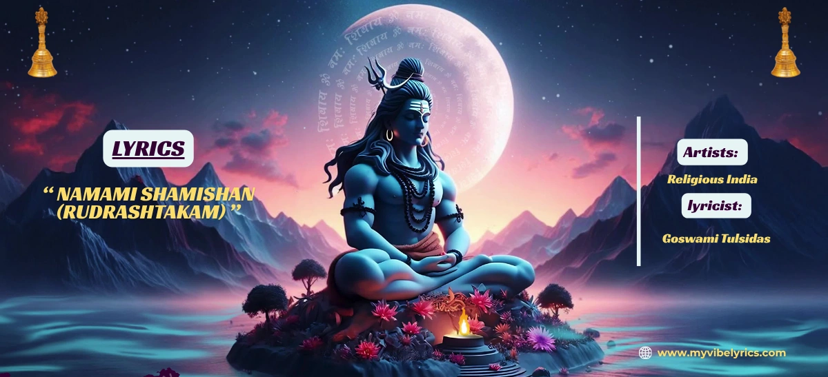 Below are the complete Religious India Namami Shamishan lyrics, presented in a clear, stanza-by-stanza format for an enriching devotional experience. The Namami Shamishan lyrics in Hindi are shown in the original Devanagari script, followed by precise Roman transliteration and an accurate English translation. This detailed presentation also includes the revered Namami Shamishan Nirvan Roopam lyrics, allowing devotees and learners alike to grasp the spiritual essence and poetic depth of the hymn.