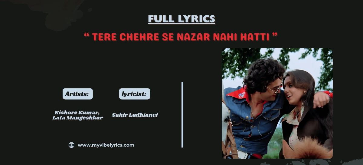 In the golden era of Bollywood, few melodies capture the intoxicating rush of love like tere chehre se nazar nahi hatti lyrics. This timeless track, a duet that blends vulnerability with fervor, stands as a testament to the magic of 1970s romance. Sung by the legendary Kishore Kumar, whose velvety voice drips with playful yearning, and the ethereal Lata Mangeshkar, whose notes weave tenderness into every syllable, the song hails from the iconic 1976 film Kabhi Kabhie. Composed by the masterful Khayyam, who infuses it with swirling strings and gentle rhythms evoking a lover’s heartbeat, and penned by the poetic genius Sahir Ludhianvi, whose words paint desire as an inescapable force – these kishore kumar tere chehre se nazar nahi lyrics continue to ensnare hearts decades later.